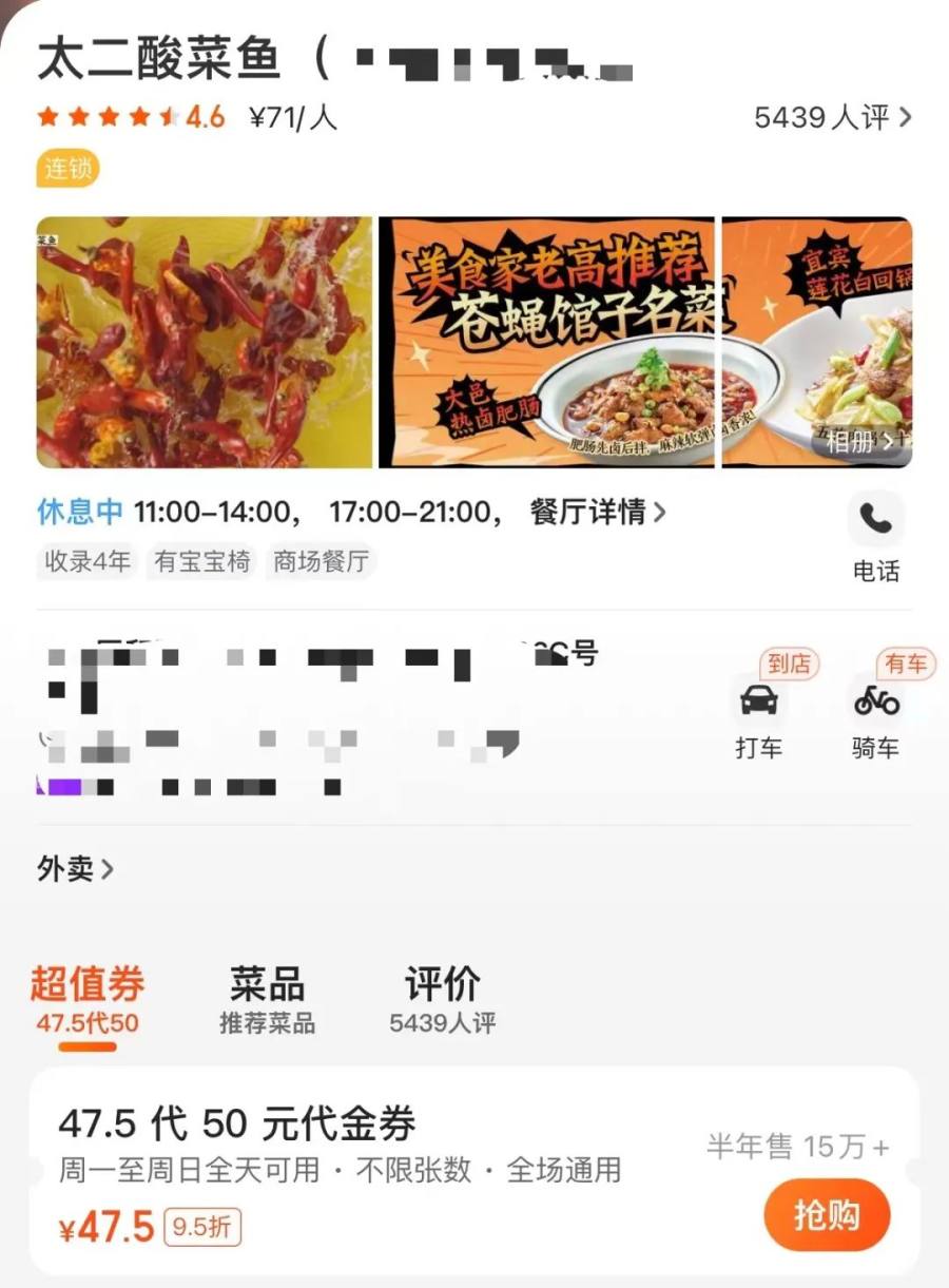 要知道,太二入驻美团这么多年,别说优惠团购,就连代金券也只有47.5代50元这一项,同价位对比抖音多出了26元,用户更倾向于在哪边消费,不言自明。