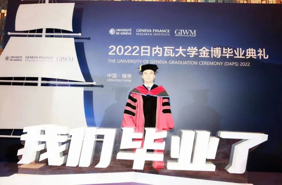 2022年9月18日,姜明在深圳珠海参加瑞士日内瓦大学金融博士毕业典礼。