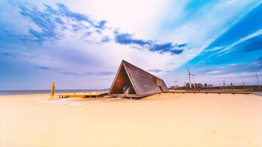 这是一片可与马尔代夫比肩的钻石沙滩。16公里蜿蜒漫长的海岸线和2.5公里洁白柔软的钻石沙滩完美契合,洁白如银的沙滩细腻松软,漫步其上,细腻的沙子悄悄钻进脚趾缝,调皮而柔软。目光所及,除海天蔚蓝一色,便是优雅的海草亭,远处白色的大风车悠哉悠哉地转着,任时光轻轻流淌。