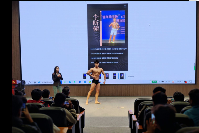 1月15号下午,绽放你的美——健美健身校园行,首站走进郑州智能科技职业学院。郑州市健美运动协会开展的这次活动旨在大学生中普及健美健身知识,推动健美健身运动,助力当代大学生身心健康发展。在学校二楼报告厅,郑州市健美运动协会会长司予斌先生说明了举办此次健美健身校园行的目的和意义,国家级健美裁判姜红女士做了关于健美健身知识的讲座,她介绍了健美健身发展的历史、健美比赛的项目、组别、及日常健美健身的锻炼技术,同时还对同学们现场提出的关于健美健身方面的问题进行了回答。