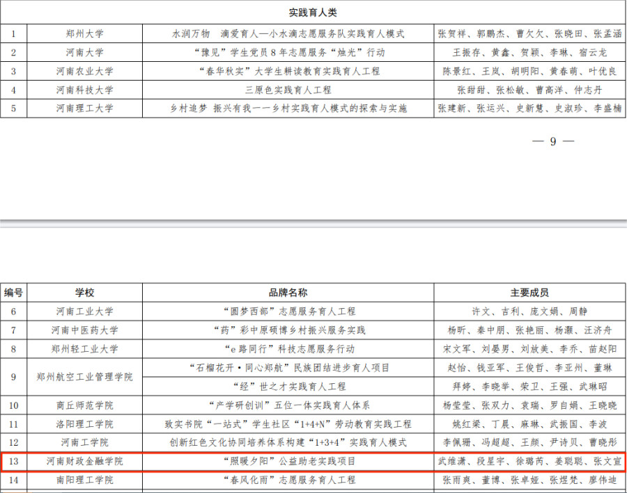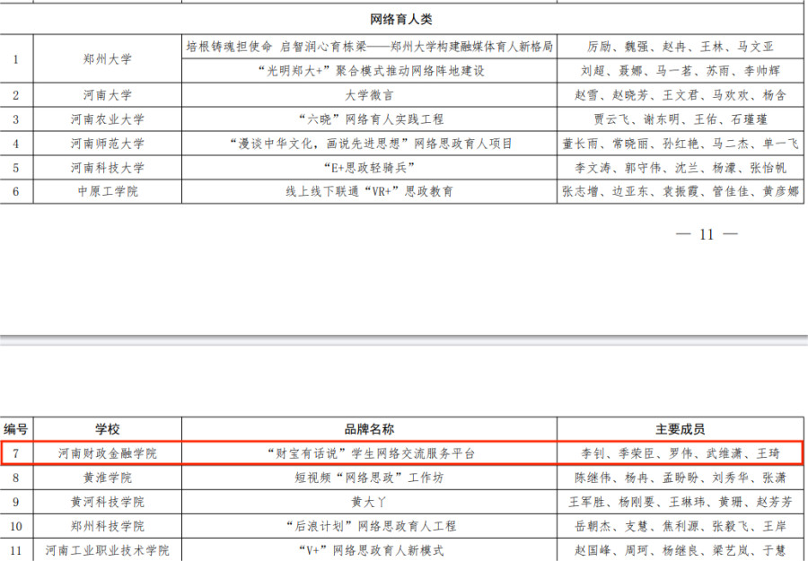 11月16日,河南省教育厅发布了《关于公布2023年度全省高校思想政治工作奖评审结果的通知》,河南财政金融学院喜获两项2023年度全省高校思想政治工作优秀品牌。