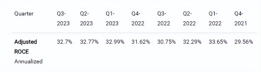 这里的关键是,波动的“ROCE”会对 Adobe 的估值产生重大影响。尽管 Adobe 以其所使用的资本产生高回报而闻名,但关键是能够持续改进这一指标,因为 ROCE 的上升将为公司股东带来更多的自由现金流。我们通过将 Adobe 的息税前利润除以“已使用资本”(即公司的总资产减去流动负债)来计算 ROCE。为了观察近期趋势,我们将回顾八个季度,计算每个季度的“ROCE”,然后对结果进行年度化以了解潜在趋势。