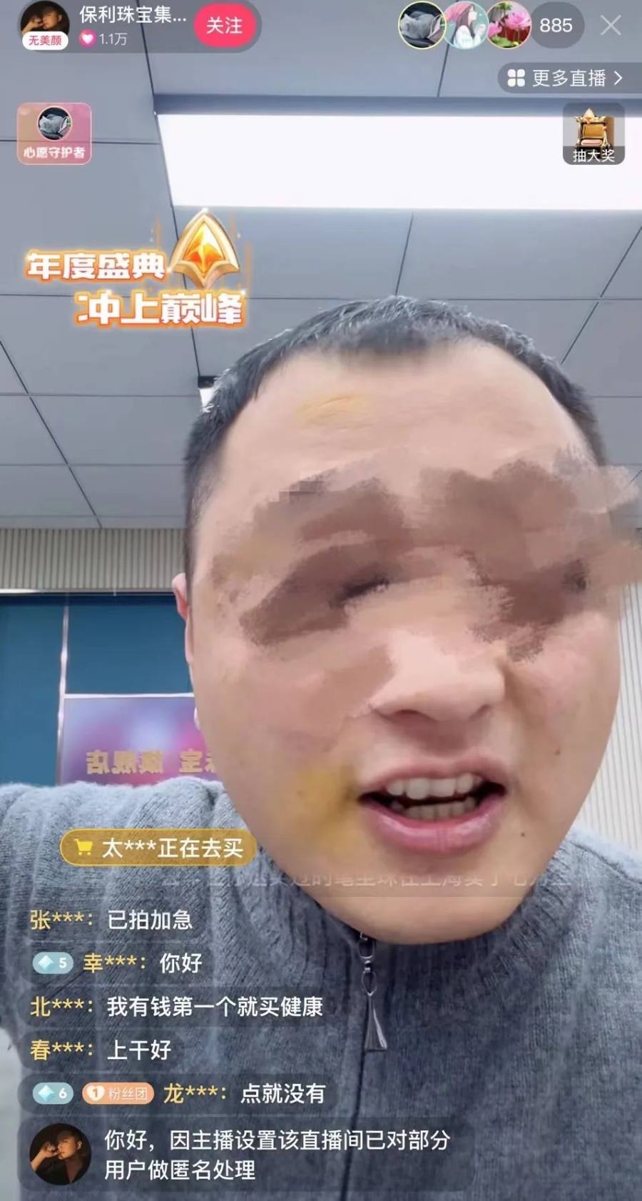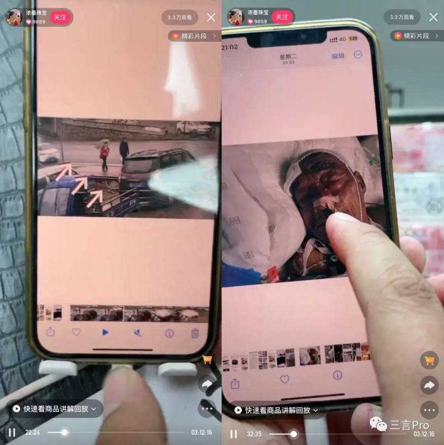 另一个主播“浓墨珠宝”,则给直播间观众说自己的父母被竞争对手撞伤,爷爷也住院,一天住院费就要3万元。