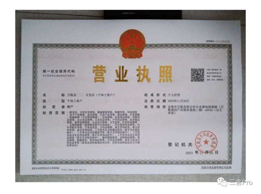 “四季珠宝”直播间关联的小店营业执照显示,其是一间名为“万载县贵X百货店”的个体工商户。