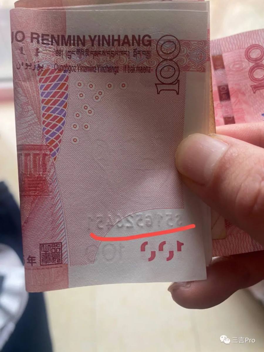 不过,笔者注意到,所有出现在直播间的百元人民币钞票,疑似都是2005年版。此外,从画面上看,直播间的一百元纸钞水印区缺少编码钢印。