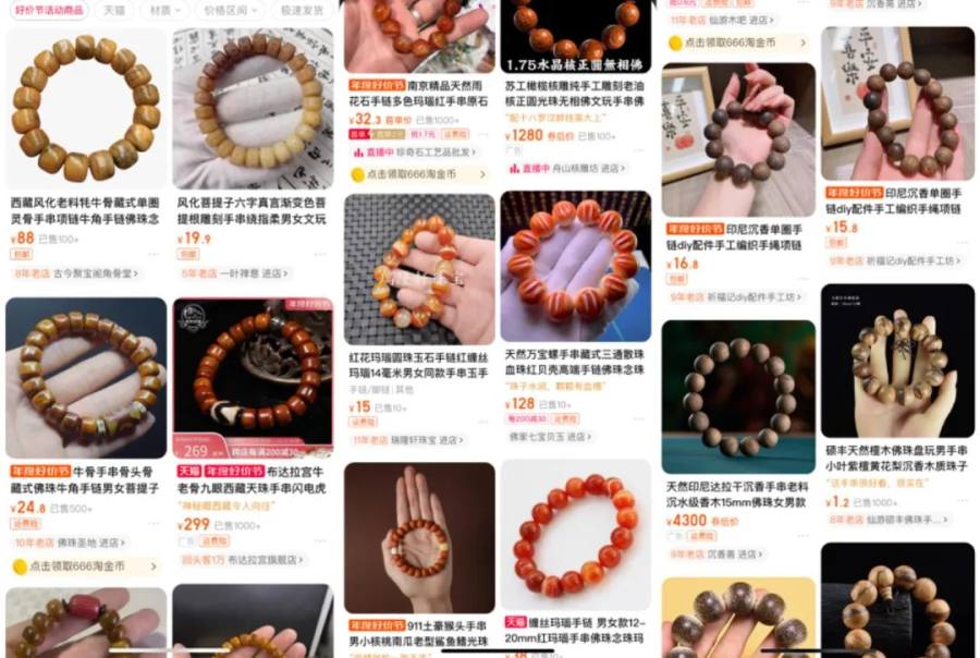 实际上,类似外观材质的文玩手串,其他电商平台上几元、几十元随便买。