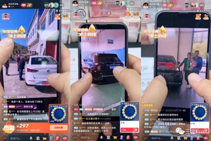 主播还会在直播间展示一些“成功案例”,比如宣传有大爷大妈靠自己帮助喜提大奔。