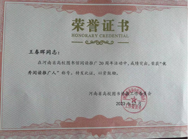 河南财政金融学院荣获河南省高校图书馆阅读推广20周年“阅读推广先进单位”荣誉称号