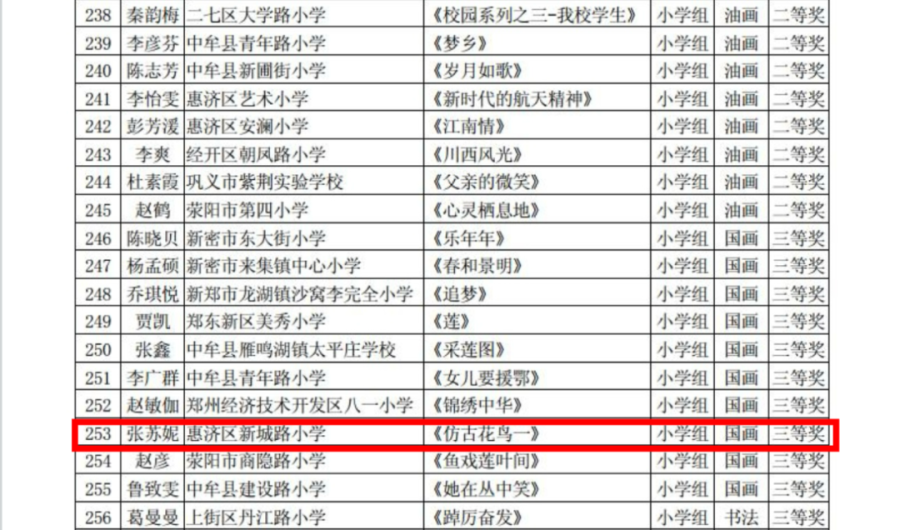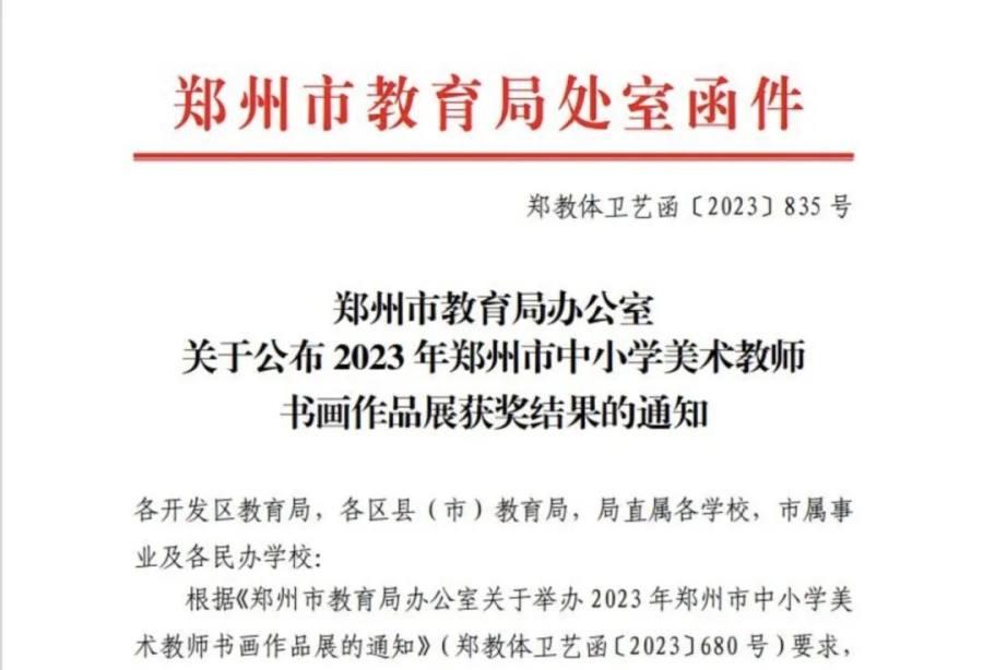热烈祝贺郑州市新城路小学师生在2023年郑州市中小学美育活动中获奖。其中教师国画类作品荣获三等奖,学生独奏类荣获一等奖。