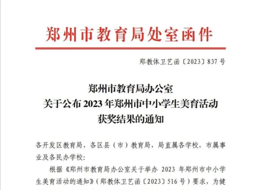 喜报!郑州市新城路小学师生在2023年郑州市中小学生美育活动中获奖