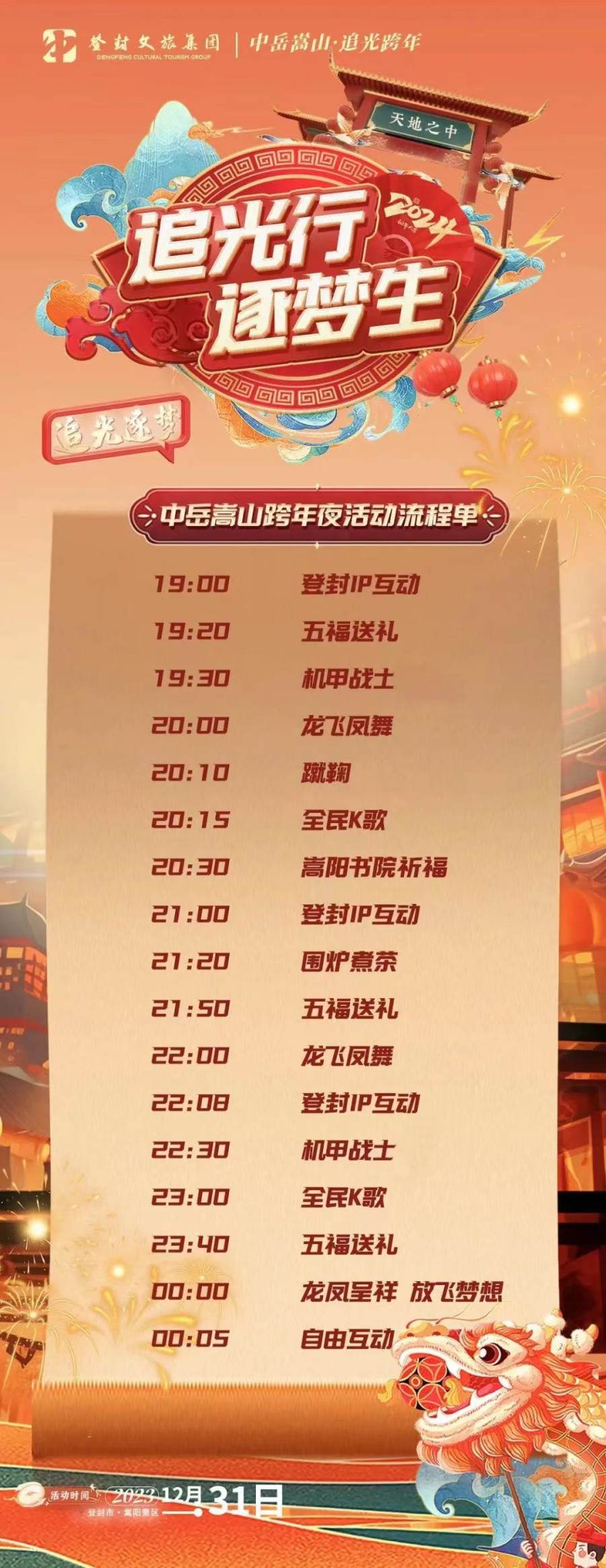 “追光行 逐梦生” 2024中岳嵩山新年天中市集节目单来了,请您查收!
