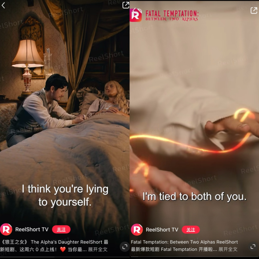 其中,欧美市场最具代表性的爆款短剧——ReelShort制作的《Fated to My Forbidden Alpha》,讲述的正是两个狼人部落争夺霸权时,一名年轻女子卷入其中的爱情故事。