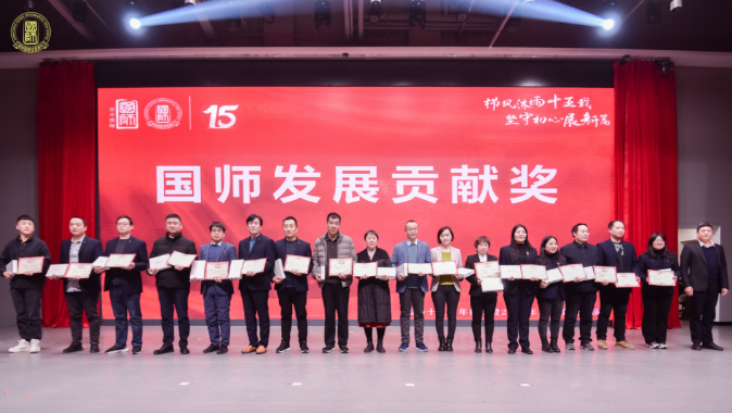 晚会还设置了“国师发展贡献奖”,奖给那些在国师讲台辛勤耕耘了十年以上的优秀老师们。这些教师是国师发展的中坚力量,他们十几年如一日,为人师表、默默耕耘、孜孜以求、精益求精。这份殊荣不仅是对他们过去丰硕成果的肯定,更是对他们未来继续“为党育人为国育才”的无限激励与殷殷期许!