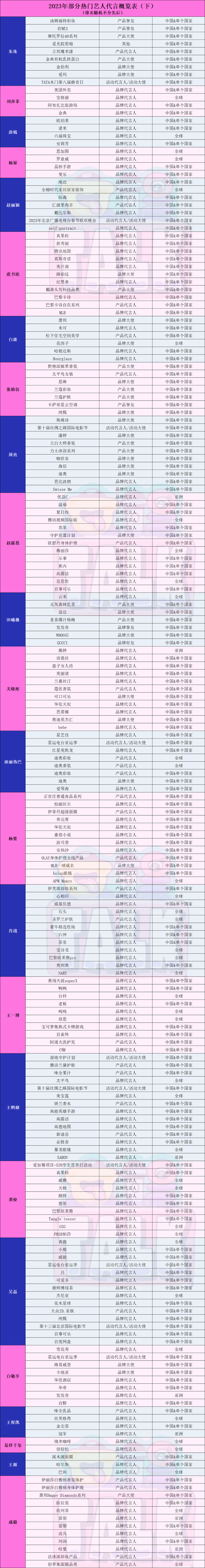 上篇,我们整理了靠角色上桌吃饭的魏大勋、高叶、檀健次、丞磊以及田嘉瑞等人,下篇,我们关注流量大盘的2023商业代言概况。