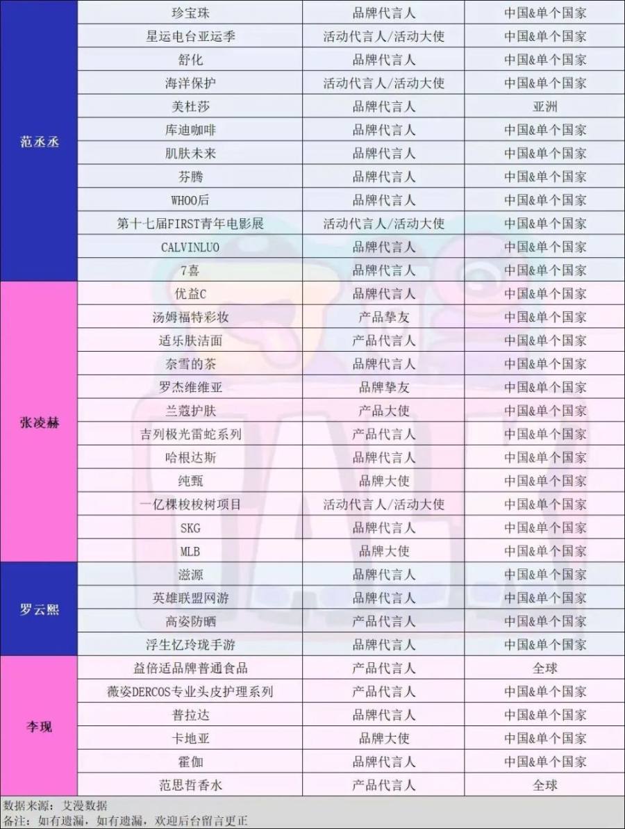 此外还有颇受品牌方喜欢的还有周雨彤和断送了前程的张嘉倪、杨颖,其中在未出现疯马秀风波之前,尽管杨颖作品口碑一致的差,但依靠着热门综艺的国民度,本年度新增代言多达7个,张嘉倪依靠女性话题红利也新增了4个商业代言的合作。