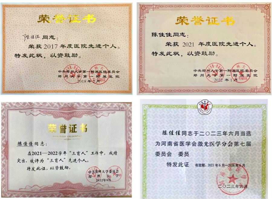 她历年来,她以大会发言、壁报等形式参与由中华医学会举办的全国眼底病年会及全国眼科年会,通过同行交流,提高手术技巧。已发表中英文学术论文及中英文书籍多部,承担省卫健委科研项目多项。她从眼科的钻研到义诊救助,从公益捐赠到带团队精心传授医术,一路走来彰显了一个眼科专家的专业、敬业和医者仁心的温度。希望在陈佳佳眼科专家和她团队的共同努力下,让更多的眼病患者获得温暖并见到光明。