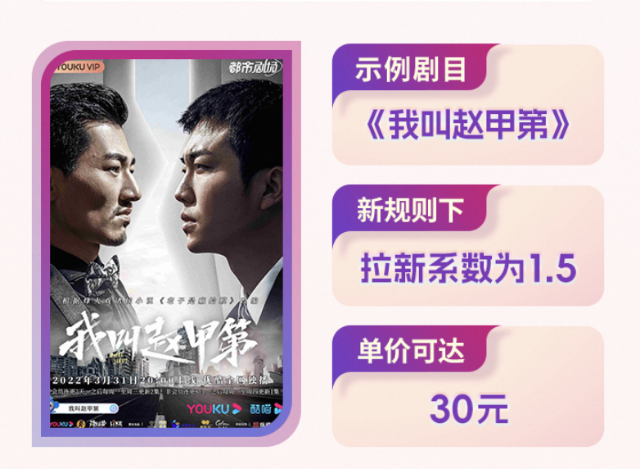 分账剧扶摇计划现也全面升级,由原有的专注优质IP拓展内容源头,升级到“IP平台/内容+优质版权定制公司+潜力新人主创”三驾马车并行模式,在该升级模式下,优酷合作的分账剧制作方也不断向上渗透,比如平台已定向邀约花儿影业、阿里影业等成熟制作公司共同开发品质内容,分别在男性赛道不断细分题材元素,女性赛道持续突破,同步开发新项目中。