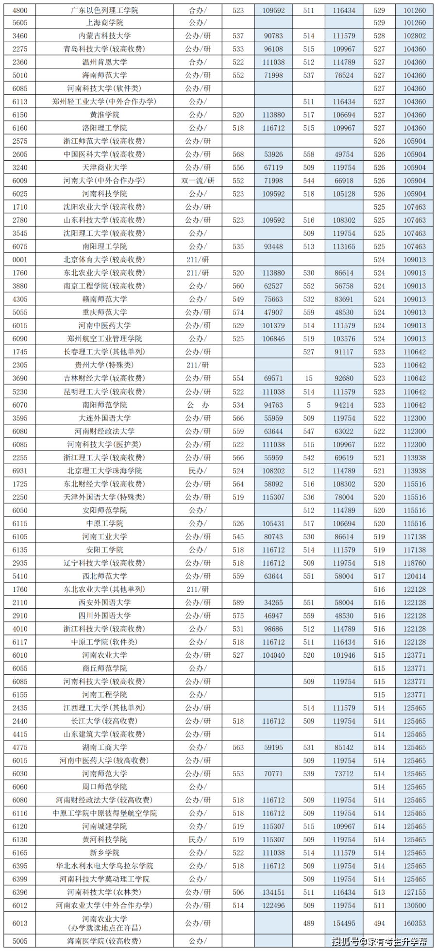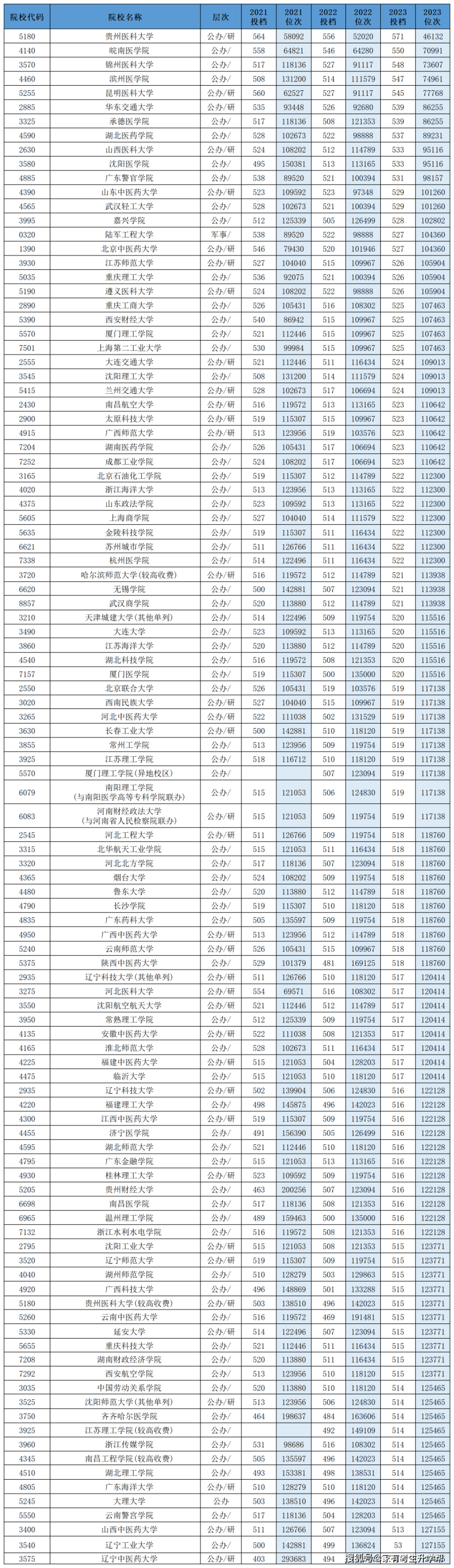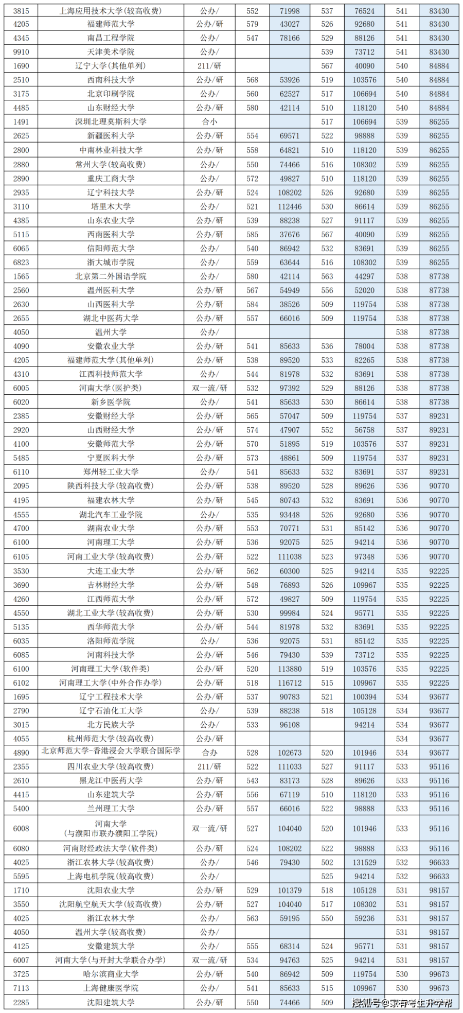 排序版 | 2021-2023年河南本科一批院校投档分及位次(文理科)