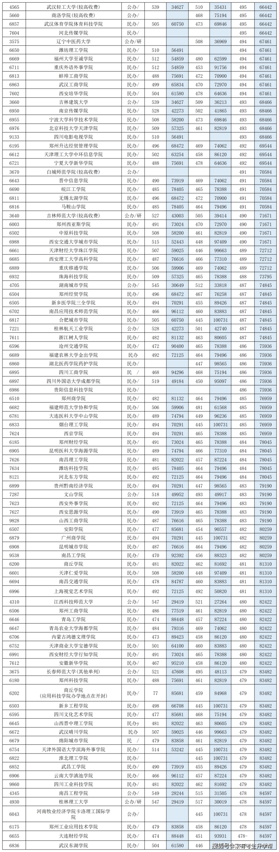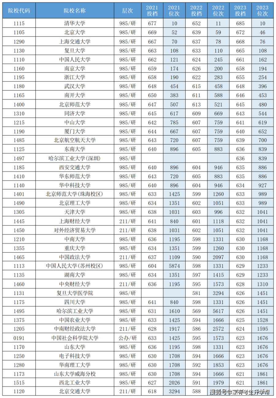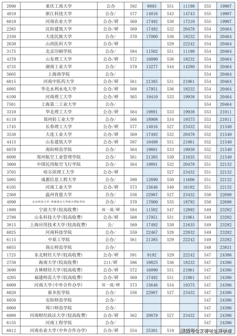 排序版 | 2021-2023年河南本科一批院校投档分及位次(文理科)