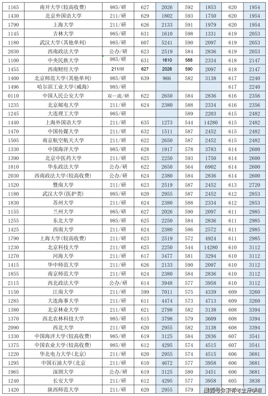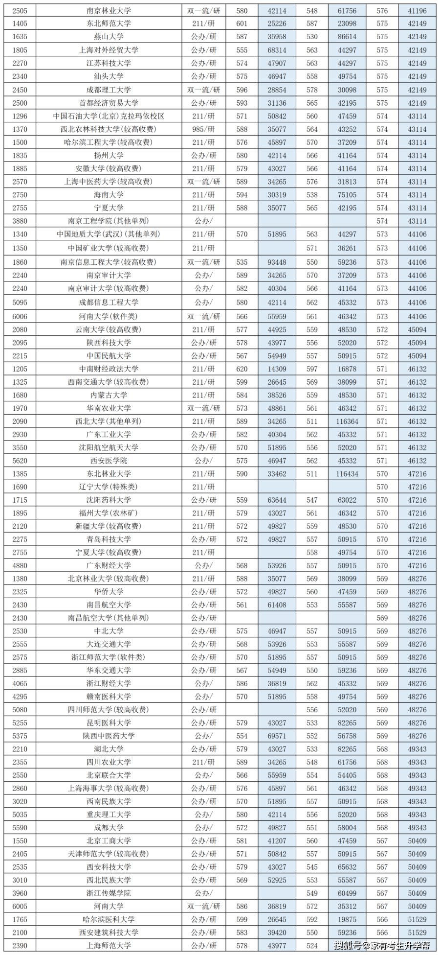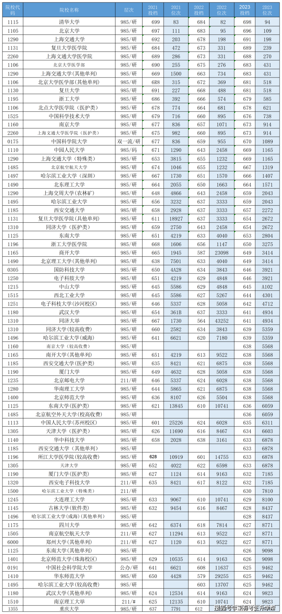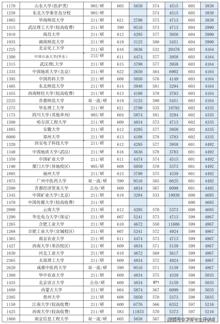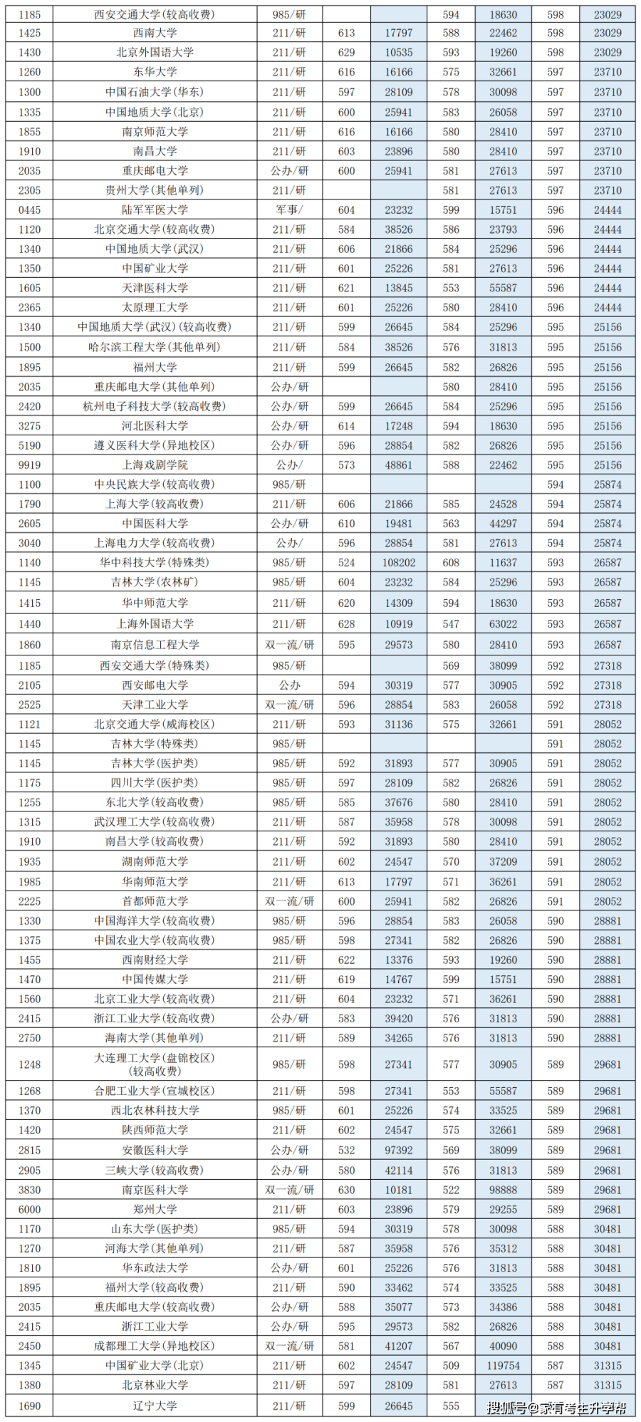 一模成绩公布,大家可以根据自己的省排名大概位次,参考下面近三年位次,看看大概能上哪些学校?