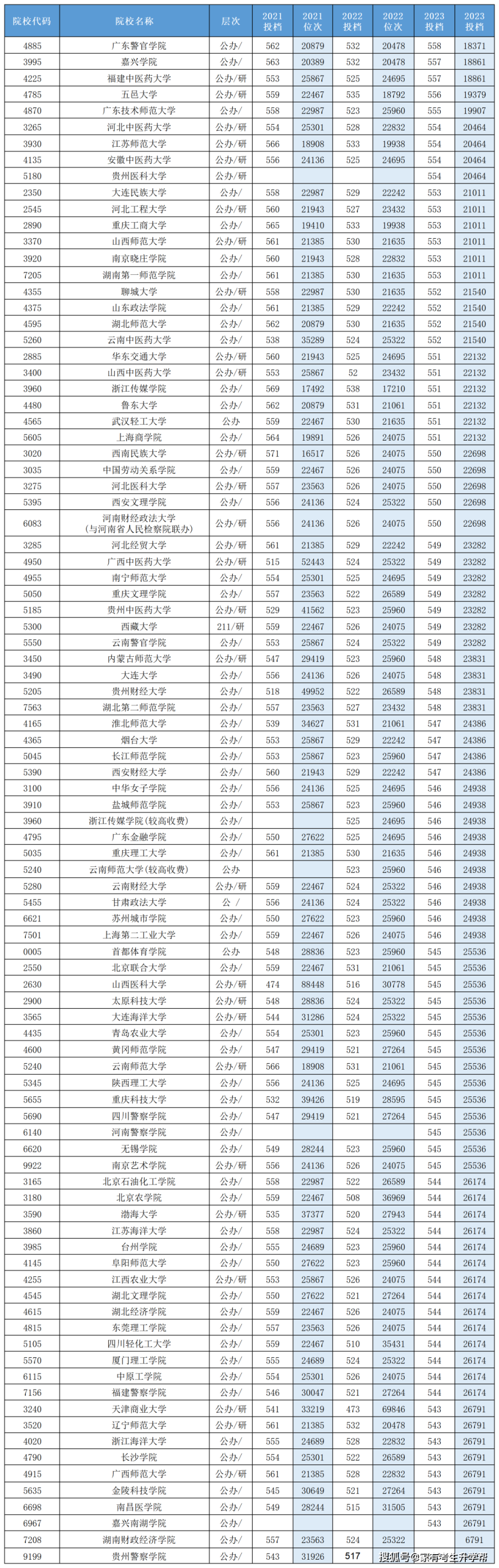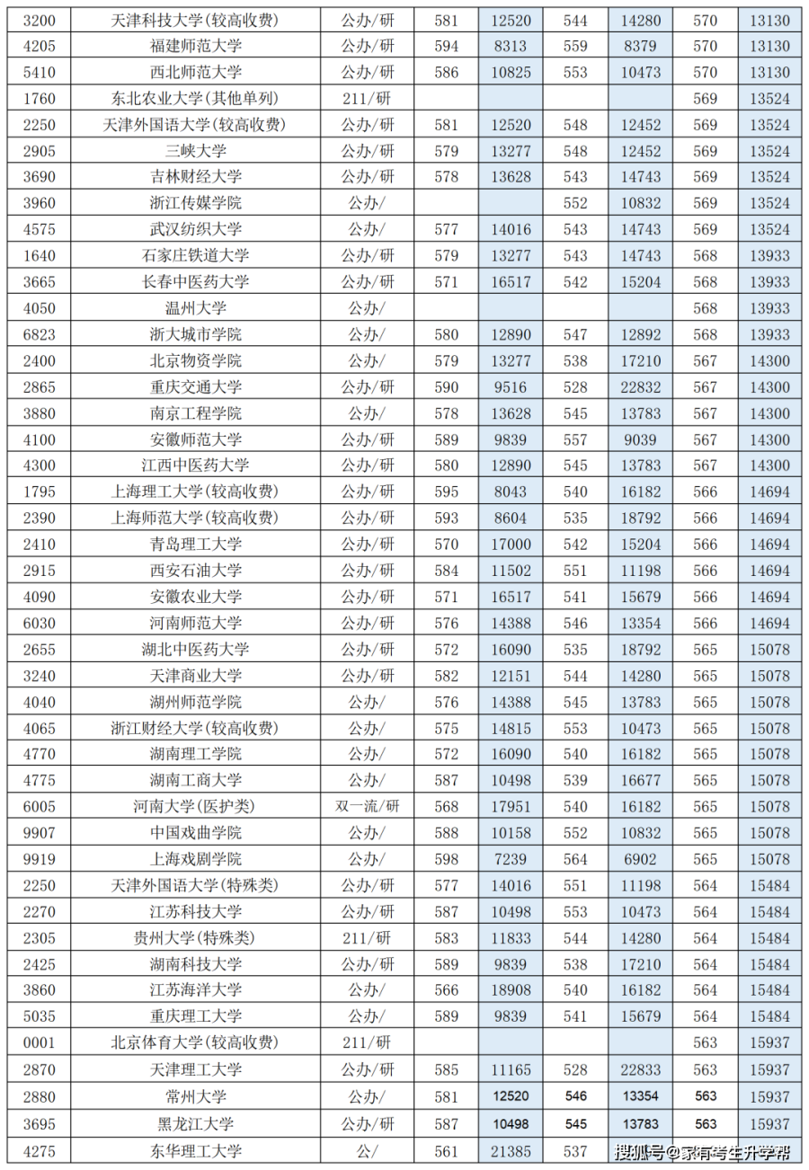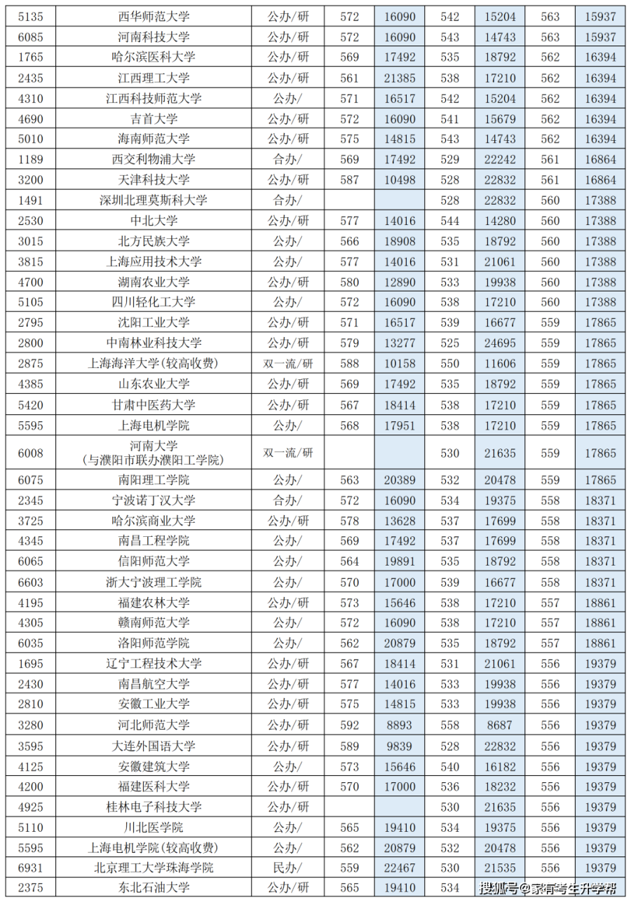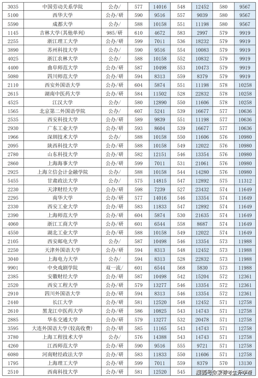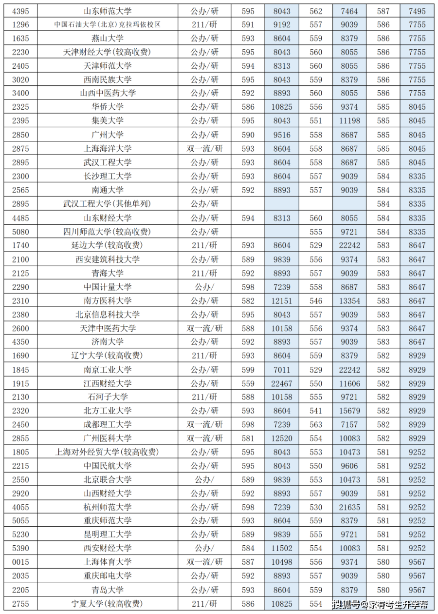 一模成绩公布,大家可以根据自己的省排名大概位次,参考下面近三年位次,看看大概能上哪些学校?