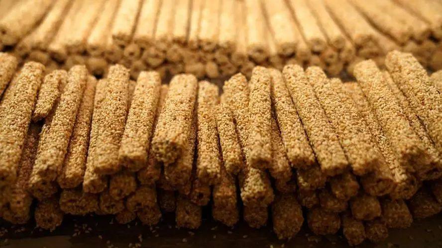 在充满热腾腾的甜香的小屋子里,老师傅手上有劲儿,拽着雪白的糖往外扯,手中甜蜜的饴糖最终要经过一二十道工序,才能成为一根根酥脆的芝麻糖。