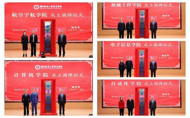 1月20日,郑州航院召开学科学院调整优化部署会议,成立航空宇航学院、机械工程学院、计算机学院、电子信息学院和自动化学院,并举行揭牌仪式。全体在校校领导出席。会议由校党委副书记余传杰主持。