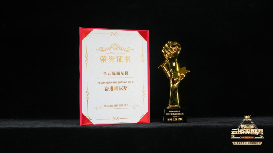 新国标圣元优强星悦还获得了第四届云颁奖“奶粉圈&奶粉智库”2023年度“奋进耕耘奖”,开创舒适智护先河,引领国货小分子走势,创新细分品类钻研奶粉营养,升级产品配方多维突破,抢占市场新高地,作到更优、更强、更拼搏。