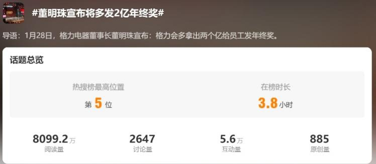 而董明珠更是在格力“2024全球梦想盛典”上公开宣布,会多拿出2个亿给员工发年终奖。相关话题一度冲上了微博热搜,羡煞不少网友。