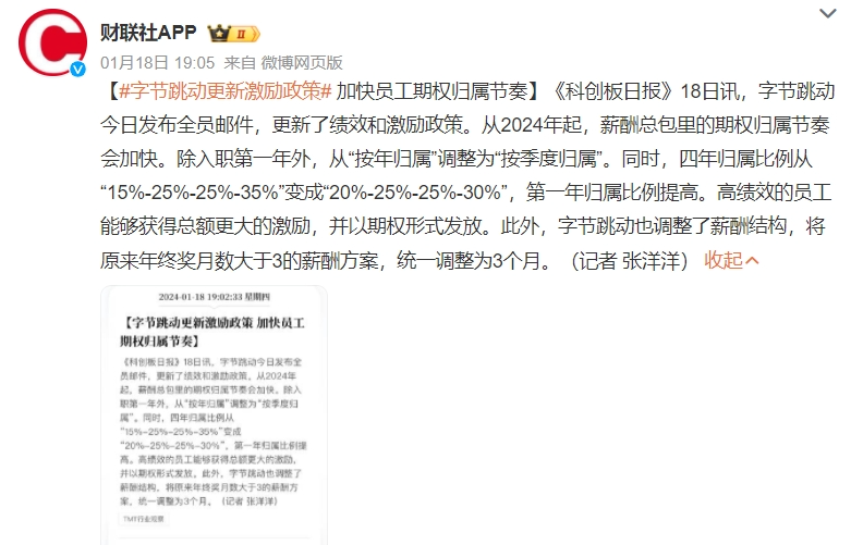 有解读认为,这是将浮动薪资的一部分变为固定工资,变相提升了月薪;但也有员工表示,原本年终奖可自选现金和期权的比例,现在则固定了期权的比例。而期权是逐步发放,要在职时间足够长才能拿完,离职后期权回购给公司还要打折。此举实则是加深了员工与公司的绑定,而且期权虽然可能有升值空间,但相比现金还是有些遥不可及。