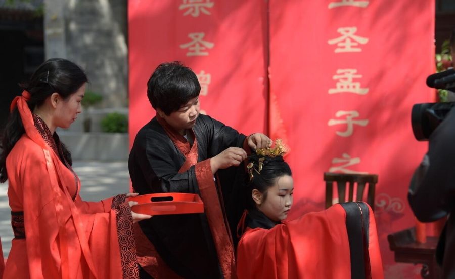 当时的人们就把头发很小心地呵护起来,成年后绾成发髻盘在头顶,类似秦俑的发型,然后插进发簪,还要戴上帽子或者头巾,士大夫以上阶层的男子还要先包上头巾再戴冠。所谓:男子二十冠而字,女子十五笄而字。也就是说只有盘了头,戴了冠(笄),才算成人,就可以自己起“字”或“号”了。