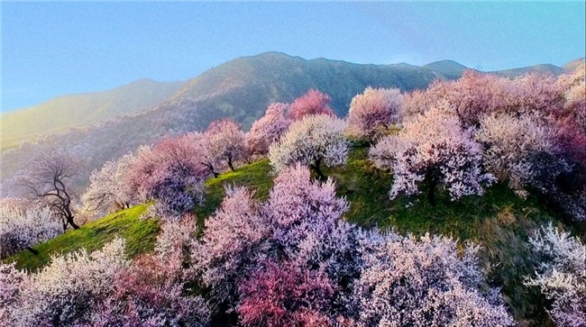 那拉提杏花谷:位于新疆伊犁新源县吐尔根乡,是一片公元14世纪遗留最大的原始野杏林,集中分布于巩乃斯河北岸,占地有3万多亩,那拉提杏花谷是新疆野杏林比较集中的地区之一。