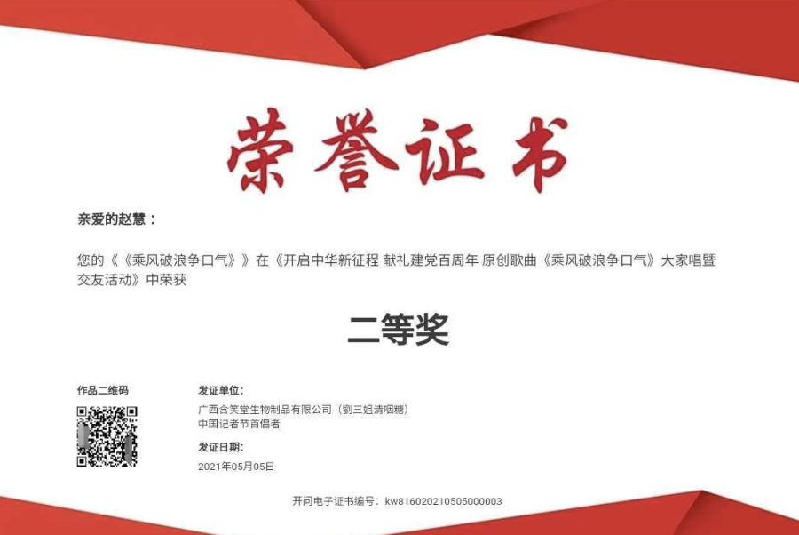 2024年1月26日参加中央新影中学生频道(原CCTV中学生》春节联欢晚会荣获一等奖