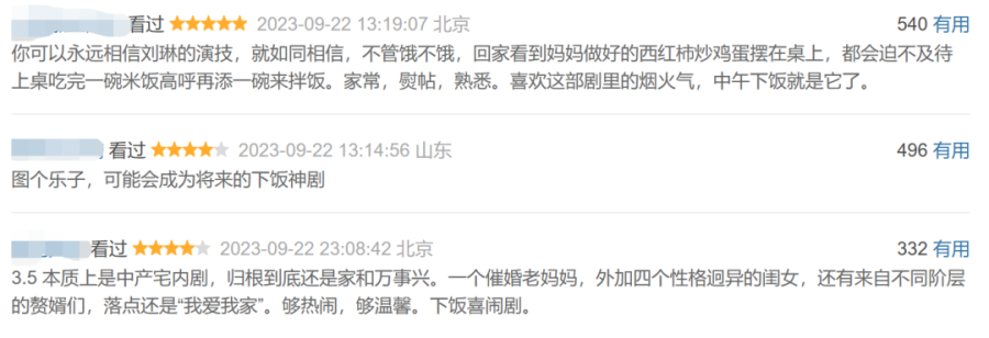 相似的,腾讯视频着力打造板凳单元,在内容布局上也呈现出相似趋势。一方面,板凳单元放弃了以往周播、晚间更新的排播模式,尝试构建“午间板凳剧”的概念,满足午间下饭场景下的内容消费需求。效果也的确立竿见影,《兰闺喜事》播出后,评论区不少人都在肯定该剧“下饭神器”、“电子榨菜”的属性。