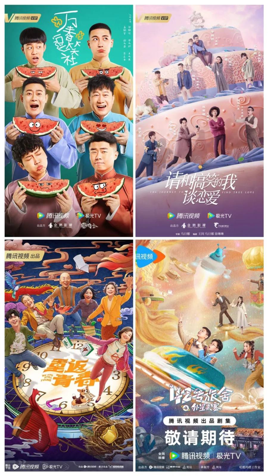 腾讯视频方面,除了板凳单元储备的《万春逗笑社》《请和搞笑的我谈恋爱》之外,在平台发布的最新片单中,还将喜剧内容划分出“大笑专区”,其中,聚焦养老题材的《重返青春》、儿童科幻喜剧《42号旅舍》等作品同样令人期待。