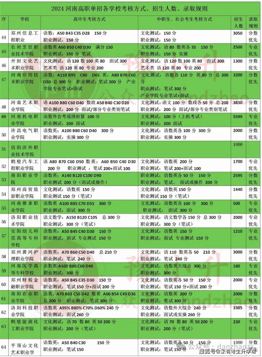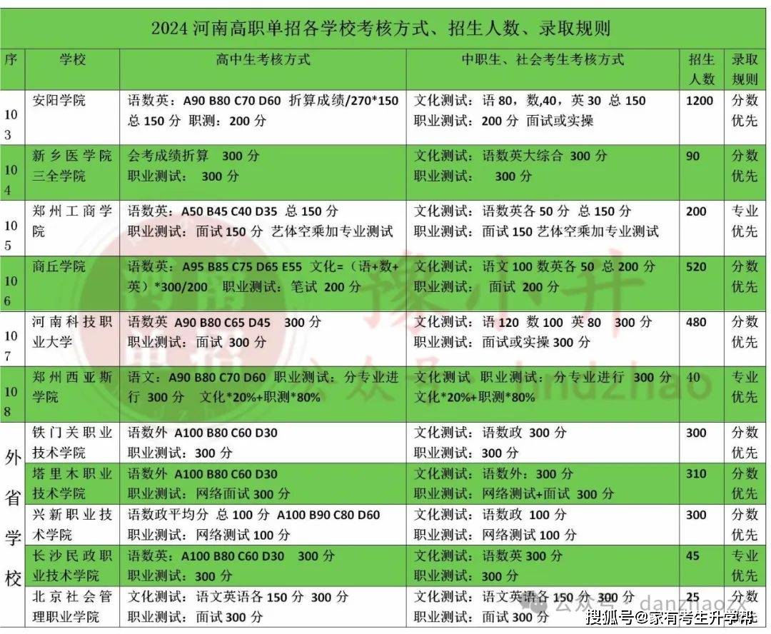 2024年河南单招必看:各学校考核方式、考试内容、录取规则、招生人数!