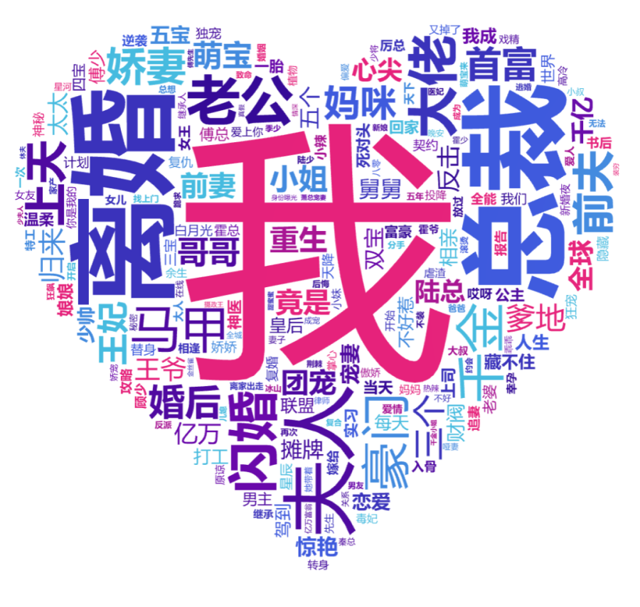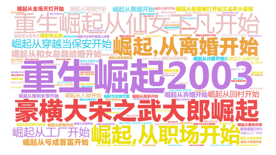 我舅是高启强(4),我的姐姐是财阀(7),弟弟是亿万神豪(31),我爸带我入赘豪门(25)后,给我找了八个女朋友(3),有一千亿舔狗(9)。(下文的词频大量在5个以下,就不继续展示了,除了极其特殊的词)。