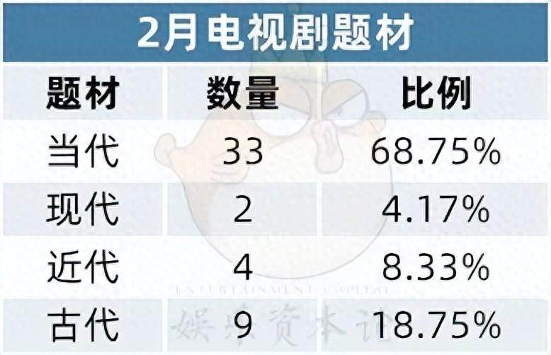 从数量上来看,本次备案的剧目数量较今年1月的52部减少4部,下降了7.69%;较去年2月的27部增加21部,同比增长77.8%。