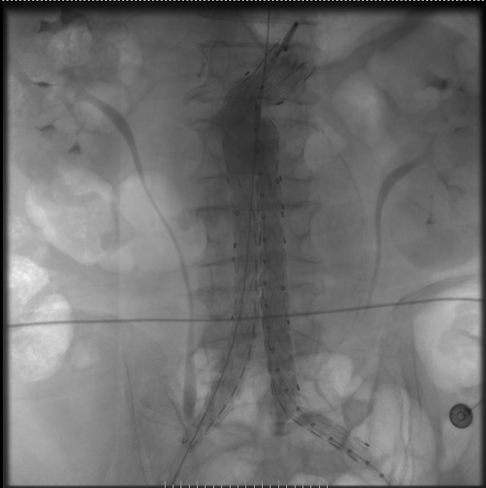 SICU王德昌医生立即给予患者深静脉、动脉置管、降压、输血等抢救治疗,并与患者家属沟通病情,建议手术治疗,患者家属商议后,同意行“腹主动脉腔内隔绝”介入治疗。