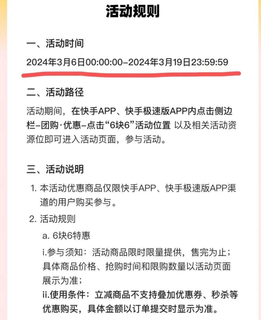 一个有意思的地方是,在“66特惠活动”规则界面写的活动时间是3月6日至3月19日,但目前已经超过活动9天了,这项活动仍旧摆在快手团购首页。可见,特惠活动效果表现不错,快手有意延长活动时间但基础设施没有跟上。