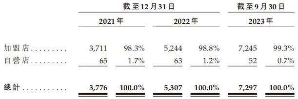 根据招股书披露,截至2023年9月30日,沪上阿姨拥有7297间门店,99.3%为加盟店,直营门店只有52间,单就门店规模位居全国第三。
