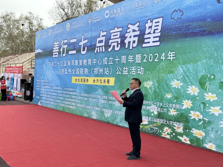 郑州社会工作协会副会长、郑州市金水区雨之露社会工作服务中心理事长徐强上台宣布,河南省首届社工关爱孤独症宣传月正式启动。