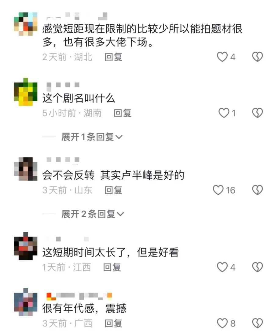 其实该短剧在上线前,就凭借悬疑类题材、精良的制作、以及强大的演员阵容,吸引了很多人的关注,不少粉丝在官抖留言:“短剧现在质感这么好了吗?”、“竟然看到TVB视帝王浩信了,必追!”、“这不是德子吗?”