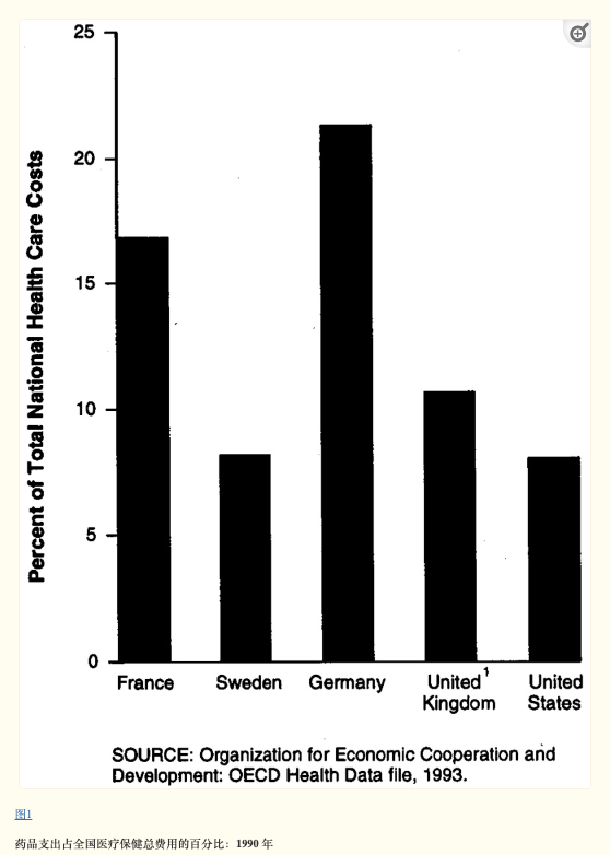 当时欧洲的药物支出到达了怎样的高度呢?以1990年为例,当时英国药品支出占医疗保健费用的11%,法国这项数据则是17%,德国更是攀升至21%。作为对比,当时美国同期药品支出仅占医疗总支出的8%。