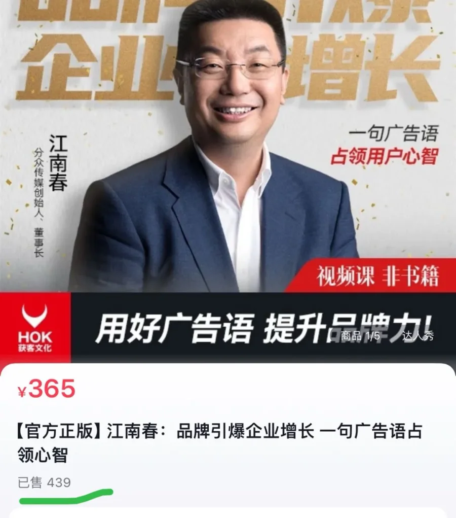 此外,分众传媒江南春早在去年就开始卖课,目前销量439。操盘公司也是同一家。