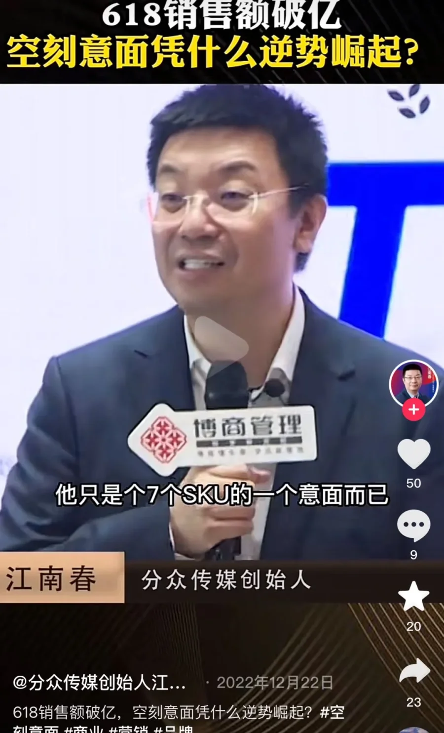 三言还发现,早在江南春2022年的视频中,就有他与博商合作的线下课内容了。