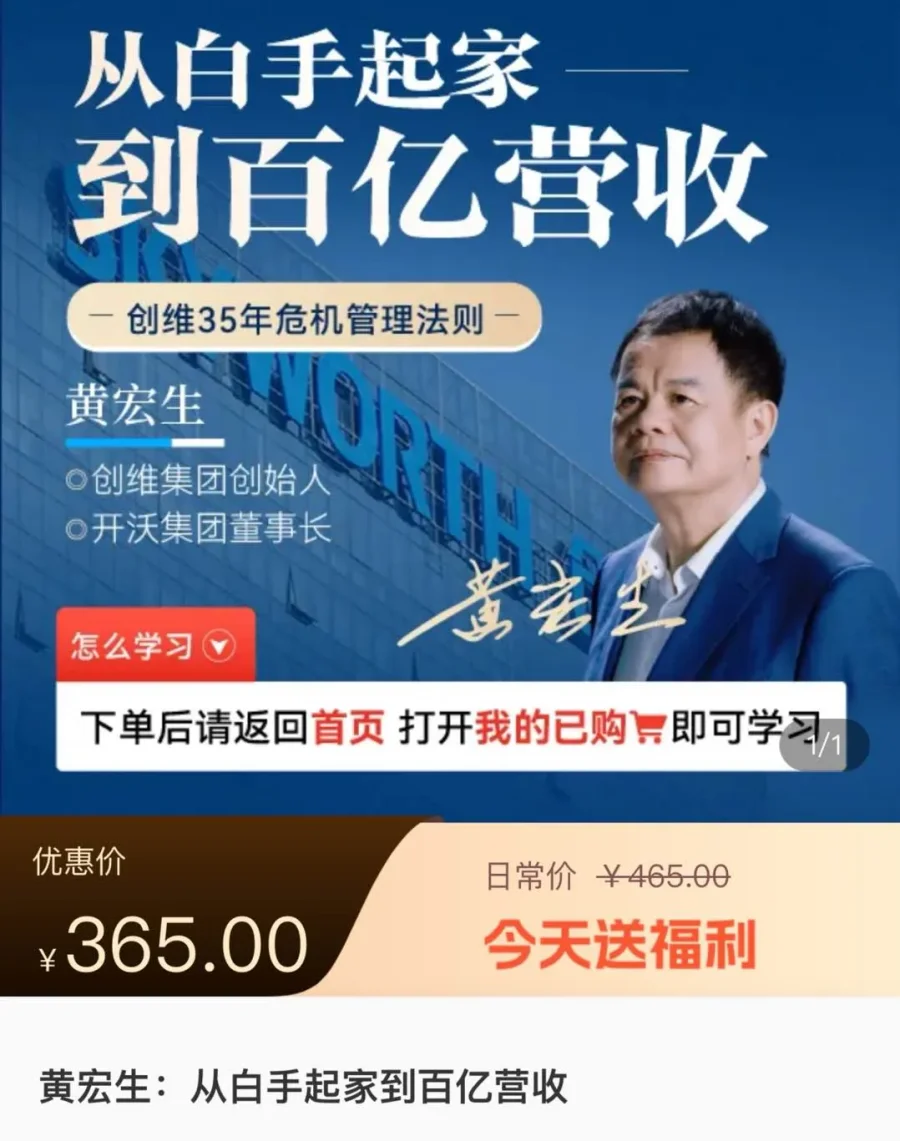 企业家们下场卖课:创维创始人黄宏生、分众江南春卖课,售价365元