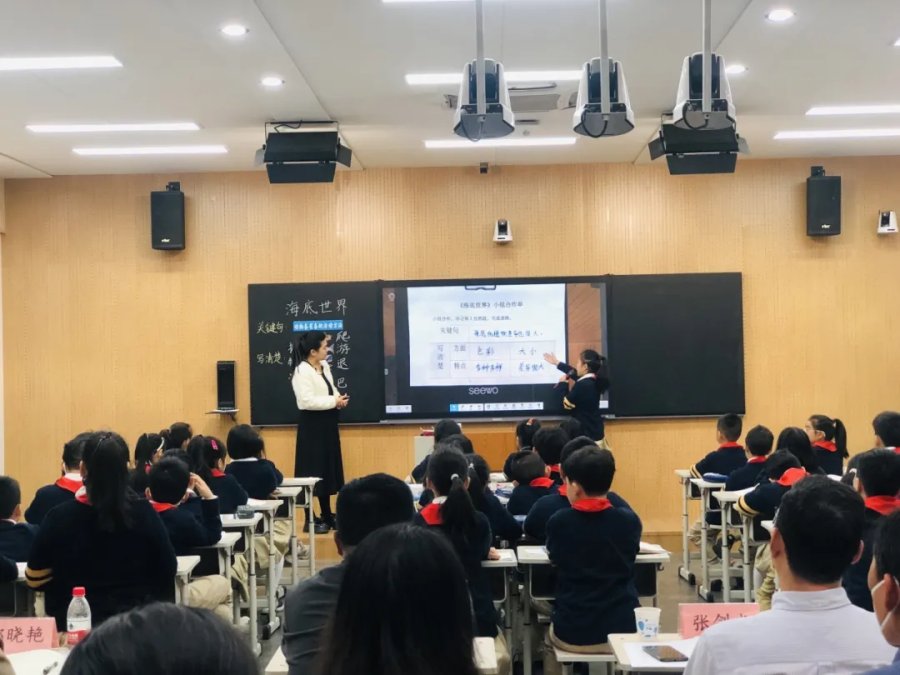 第一节课由语文学科冯晓月老师执教《海底世界》一课。冯老师依据学情巧设情境,引领学生走进海底世界,探寻动、植物密码;学以致用进行写法迁移,在文字中领略天地间蕴藏的无穷奥秘。
