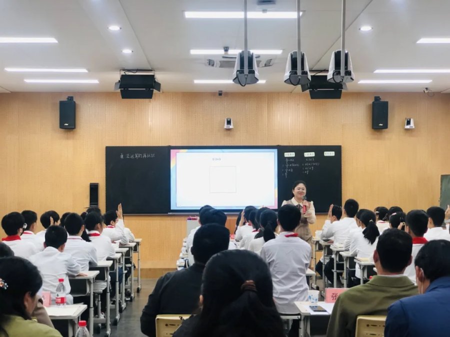 第二节课由数学学科胡文艳老师执教《乘法运算的再认识》一课。胡老师教学环节清晰流畅,学生从乘法的意义、算法、算理、运算律的角度深刻感悟了乘法运算的一致性。课堂中,学生积极参与、乐于探究,在分享汇报中既感受了乘法运算一致性的魅力,又提升了思维品质,发展了核心素养。
