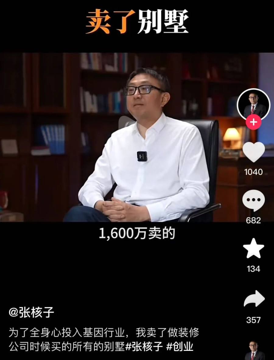 他自述自己卖掉的第一套别墅是北京的,500万买的,最后1600万卖的。后来他把自己的其他城市的别墅也卖了,凑了第一笔资金,全国去建立基因实验室,搞研发。